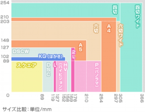 | KG (はがき)サイズ | 102×152mm | 1228×1818pixels(200万画素相当) |