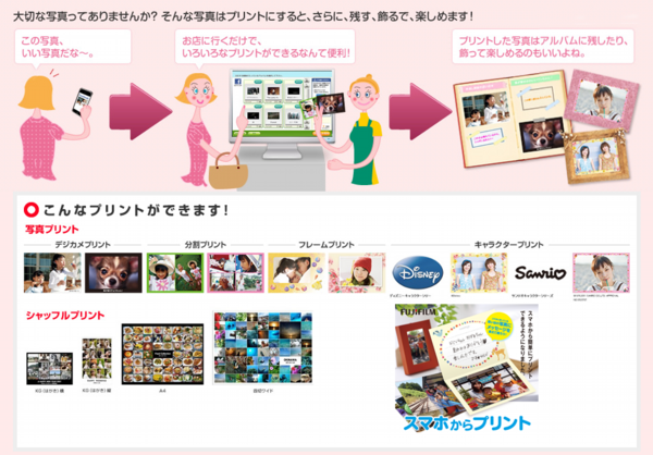 fujifilmの専用受付機でスマホ・ケータイからデジカメまで写真注文できます。さらに、TVで話題の魔法のアルバムや、フォトブック、フレームプリントなど写真を楽しみつくせる機能が満載です。暮れには写真つき年賀状作成も!!